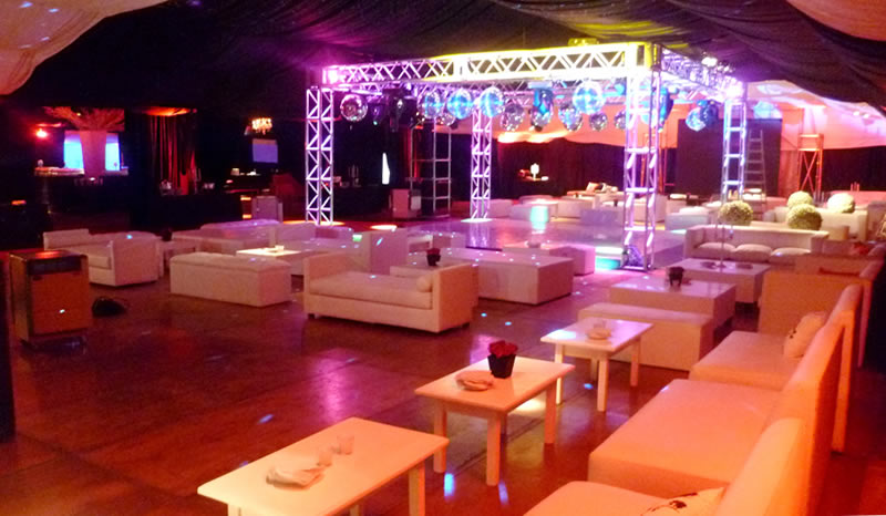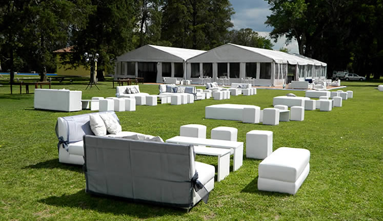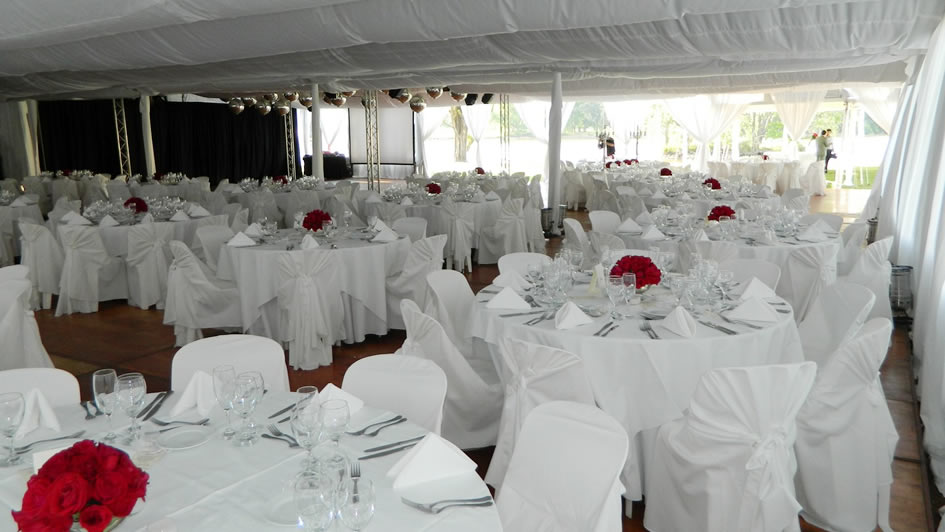 Ponemos a disposición cielorrasos de tela, pisos alfombrados o estructuras regulables de madera lustrada, servicio de vajilla, escenarios, pistas de baile, juegos de living, alquiler de mesas y sillas, climatización y refrigeración.