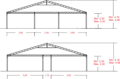 - Altura Central: 4.16 mts. / 4.96 mts.