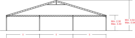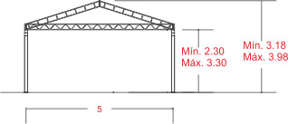 - Altura Central: 4.54 mts. / 5.54 mts.
