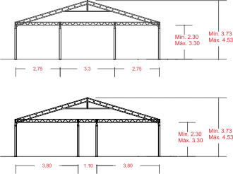 - Altura Central: 3.18 mts. / 3.98 mts.